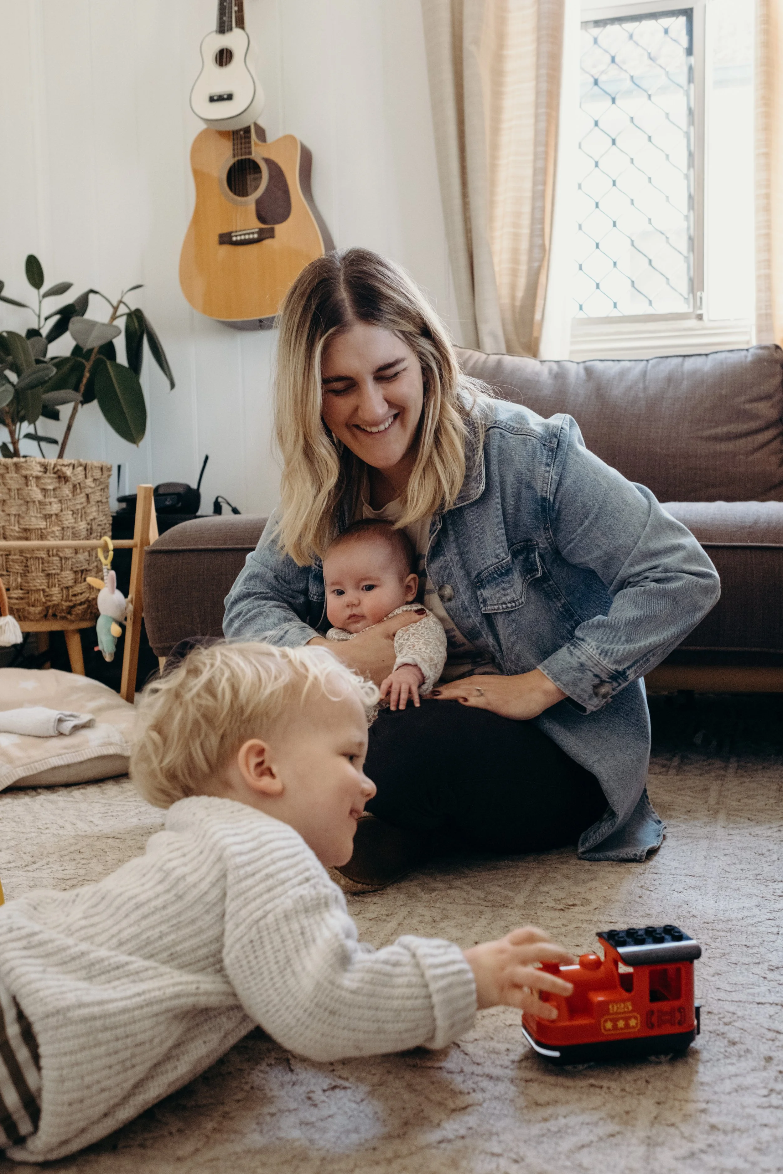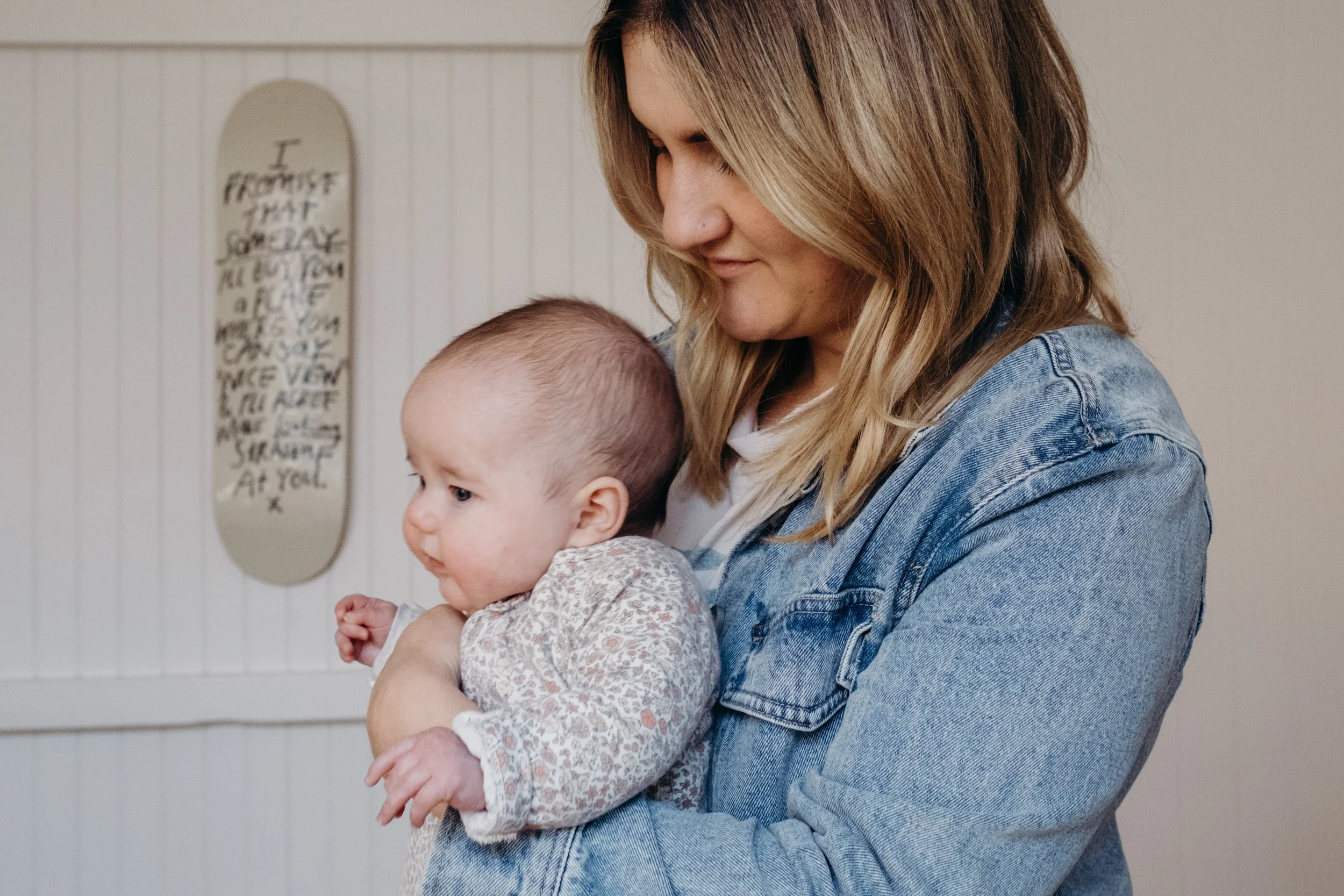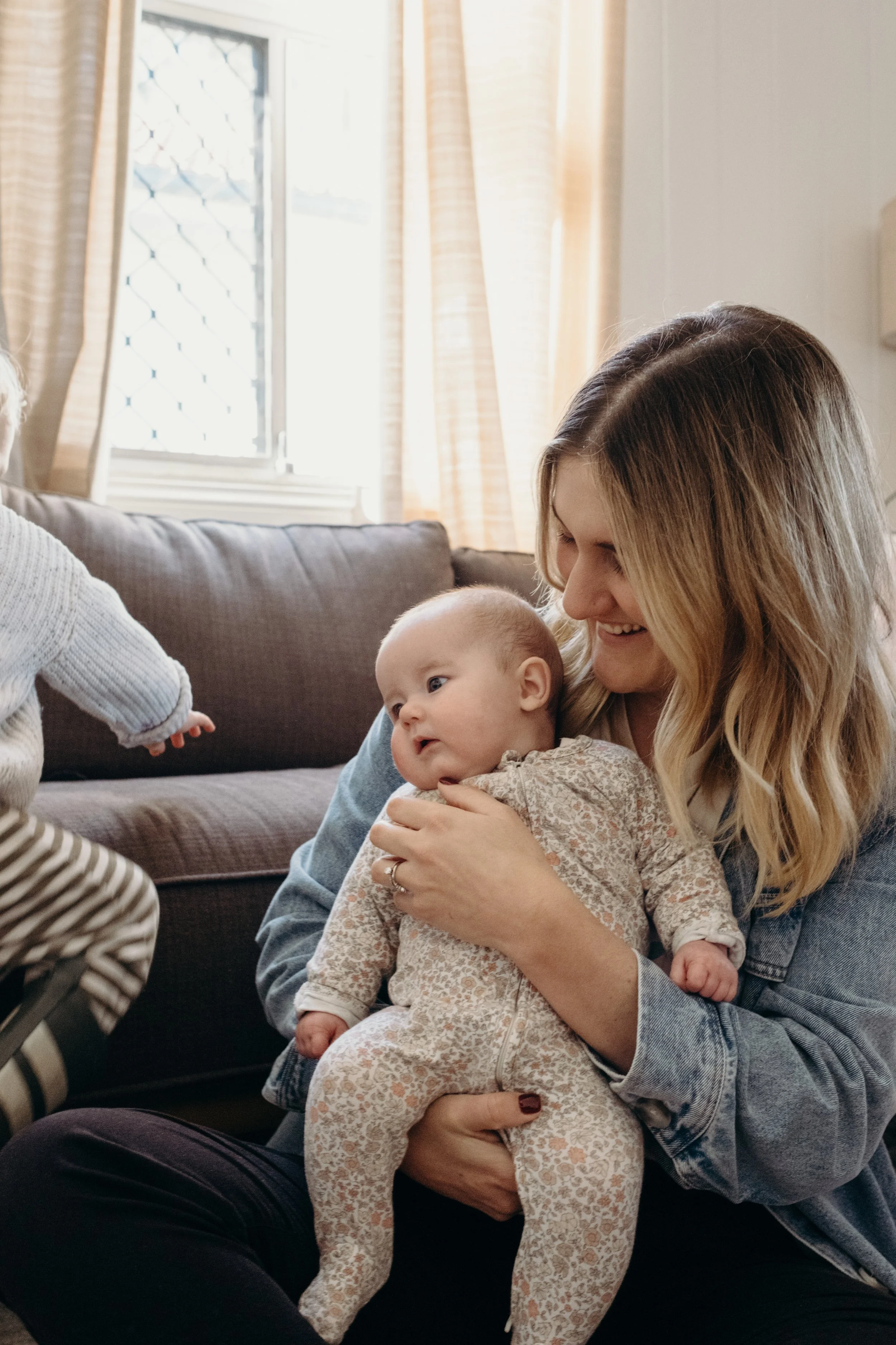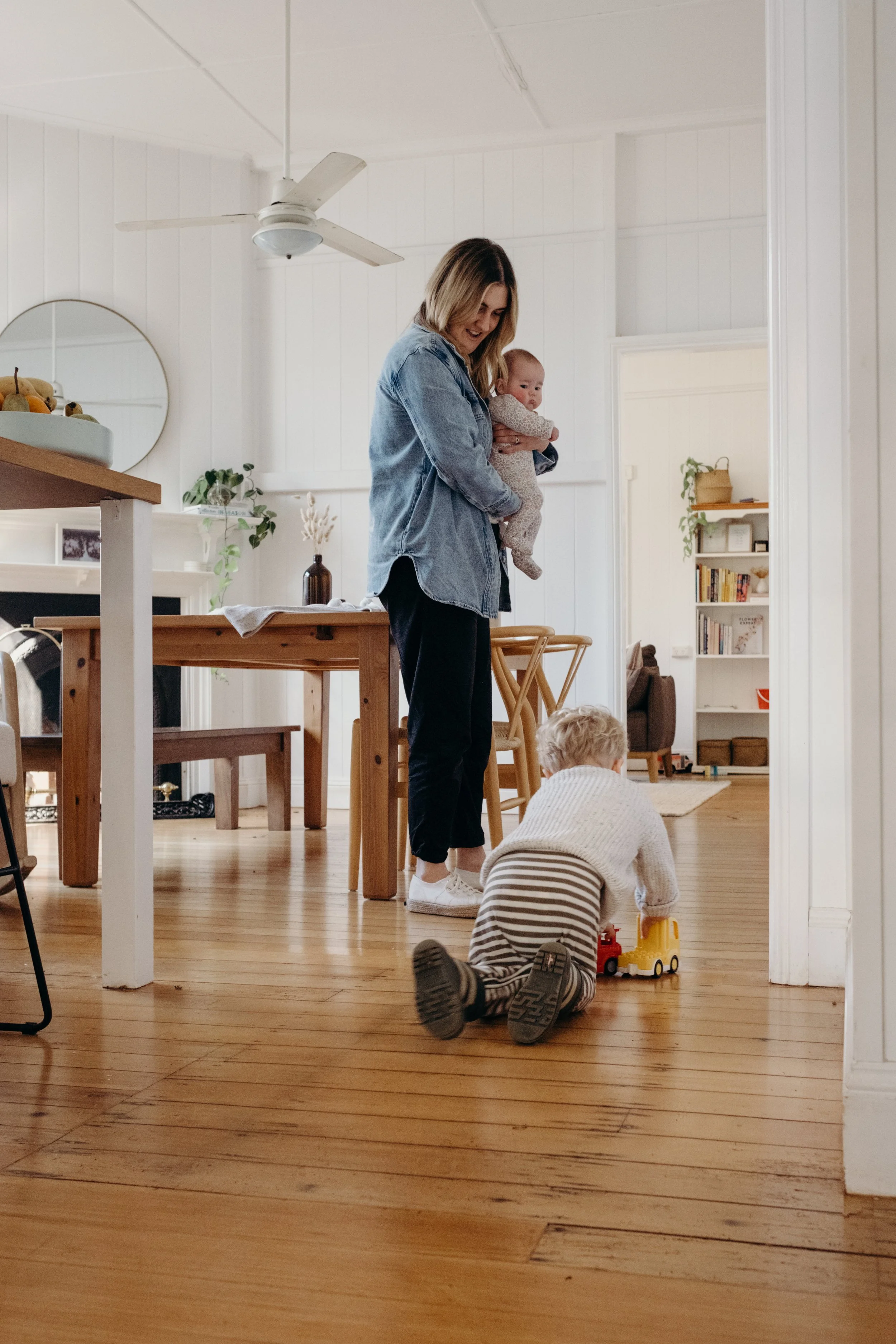 I'm good. It's been an adjustment, but I think I struggled more from zero to one, whereas one to two feels like you're already parenting, you're just parenting a little bit more. Maybe Mitch has to parent a little bit more (not that he's not already) but I think he's found it more of a struggle because he's had to have Mac where I've had Daisy. But I feel like the adjustment is making sure both are happy and dealing with the mum guilt of, are you neglecting one or the other? But besides that, I feel like our lifestyle was already in that routine, so I don't know. I feel good. I feel a lot more settled this time. This time I knew what I wanted to do with work as all those decisions were already made with Mac. I know more about how I want to parent, so that's felt a little bit nicer, whereas that felt a bit more stressful the first time around. You're kind of inventing the wheel the first time and seeing what works, whereas this time, I know what works for us, and it's just adding another child into the mix. So I feel like it's been a little bit easier to get our head around this time.