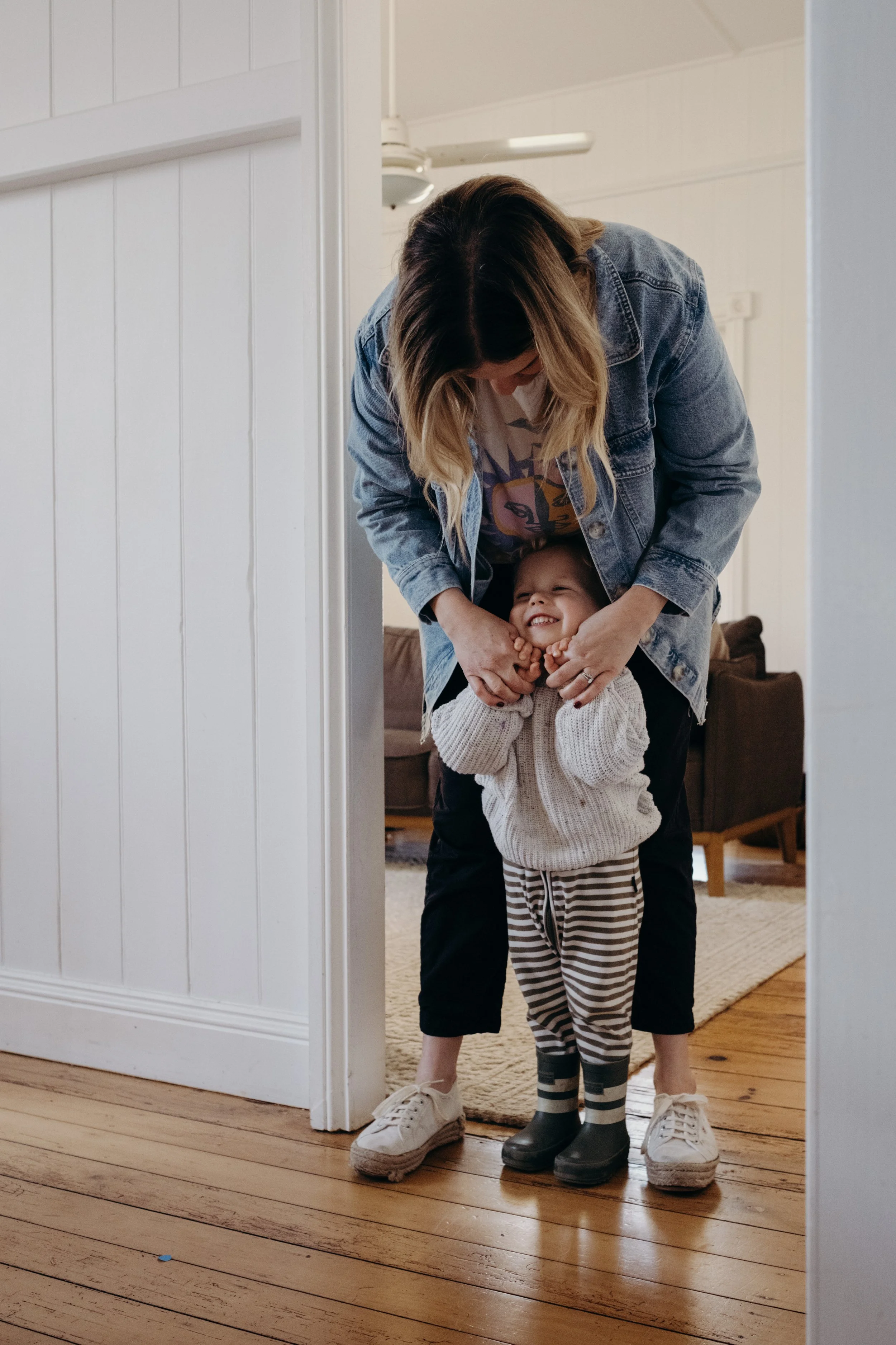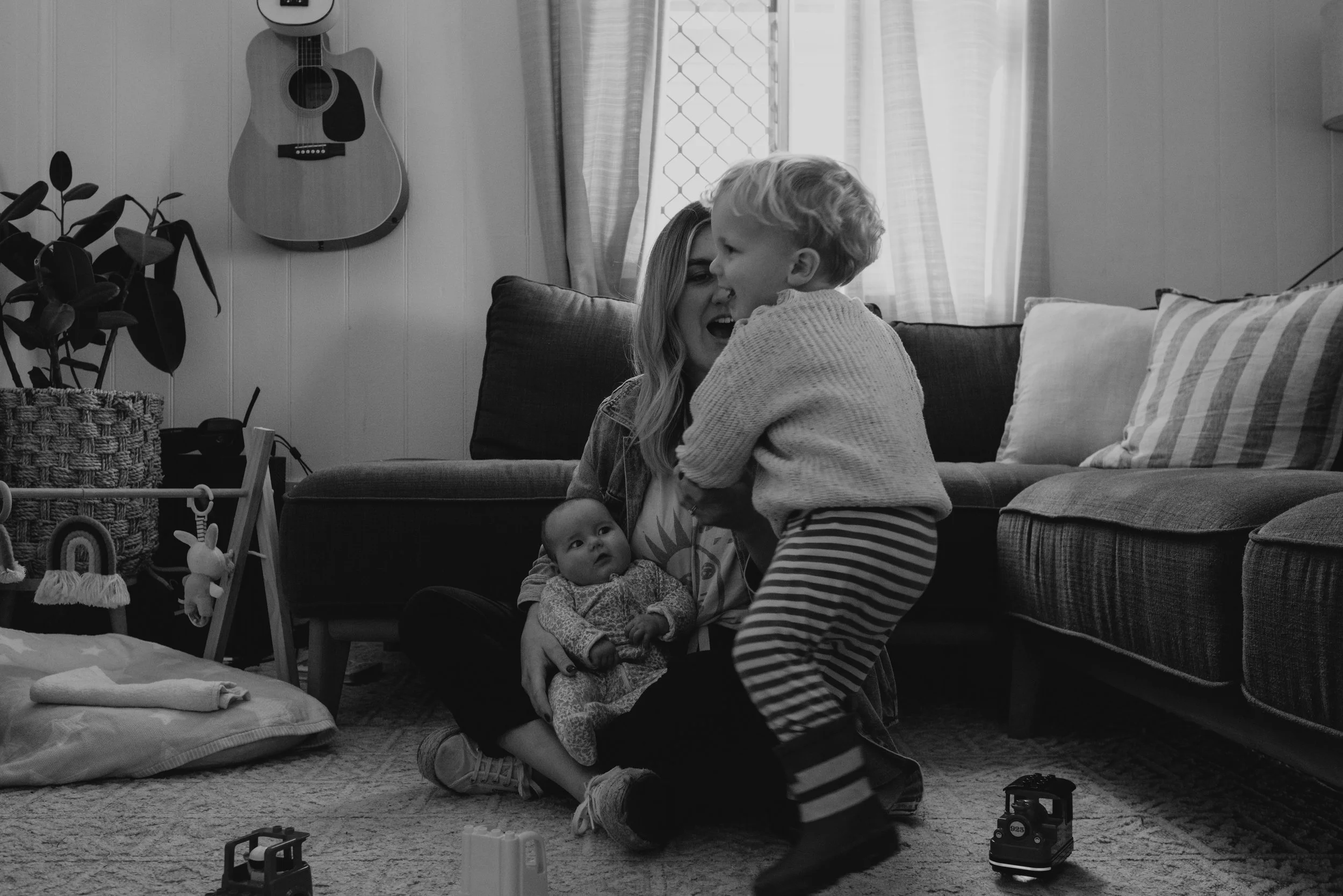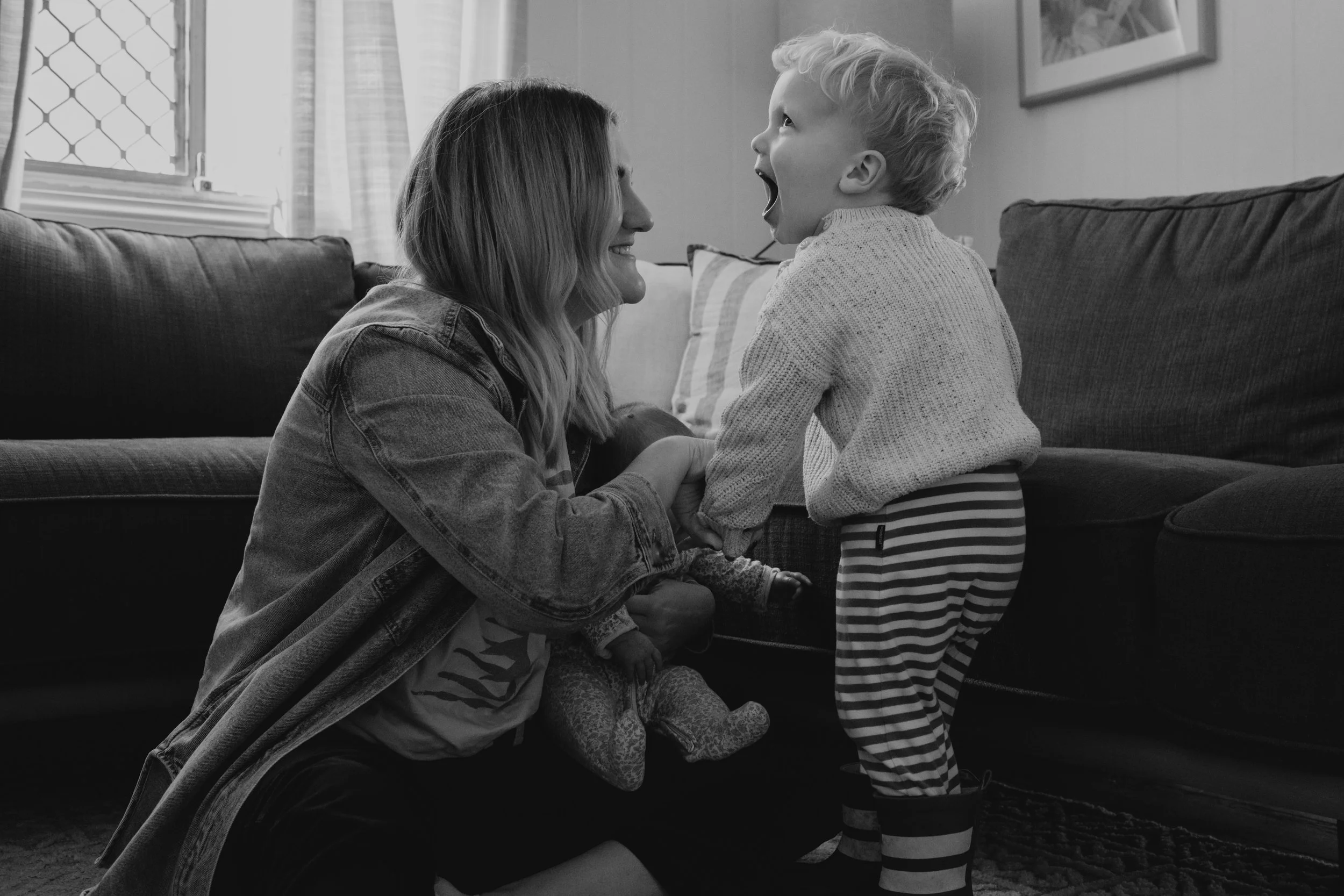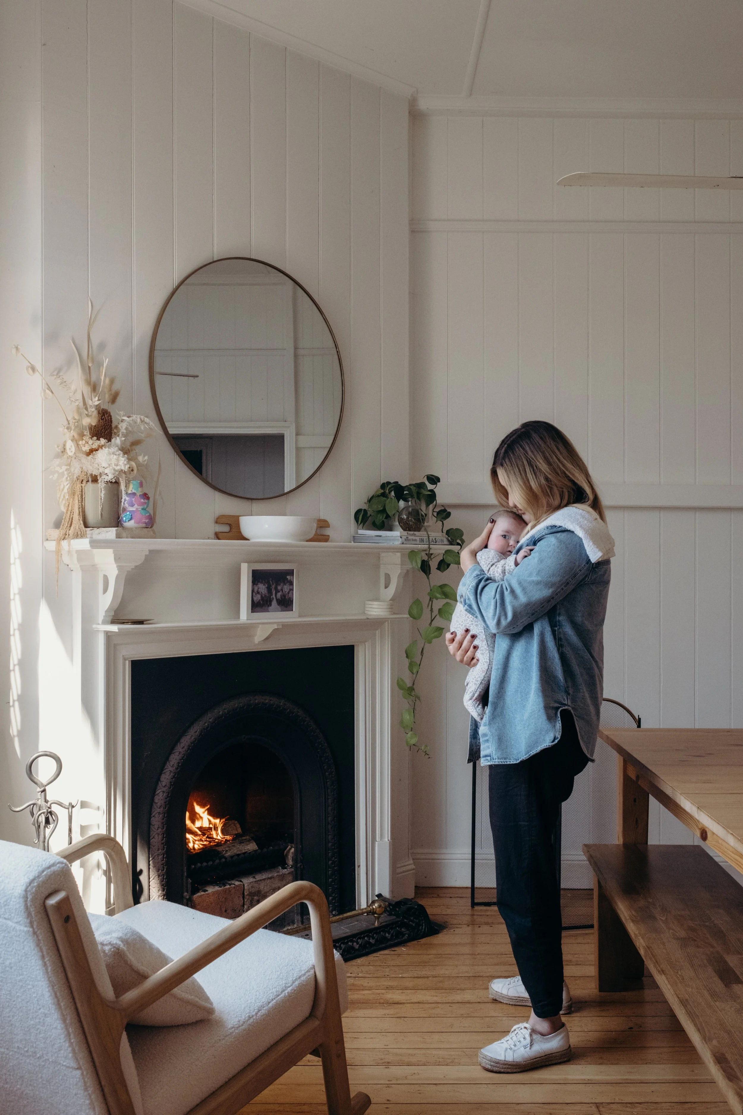 I'm good. It's been an adjustment, but I think I struggled more from zero to one, whereas one to two feels like you're already parenting, you're just parenting a little bit more. Maybe Mitch has to parent a little bit more (not that he's not already) but I think he's found it more of a struggle because he's had to have Mac where I've had Daisy. But I feel like the adjustment is making sure both are happy and dealing with the mum guilt of, are you neglecting one or the other? But besides that, I feel like our lifestyle was already in that routine, so I don't know. I feel good. I feel a lot more settled this time. This time I knew what I wanted to do with work as all those decisions were already made with Mac. I know more about how I want to parent, so that's felt a little bit nicer, whereas that felt a bit more stressful the first time around. You're kind of inventing the wheel the first time and seeing what works, whereas this time, I know what works for us, and it's just adding another child into the mix. So I feel like it's been a little bit easier to get our head around this time.